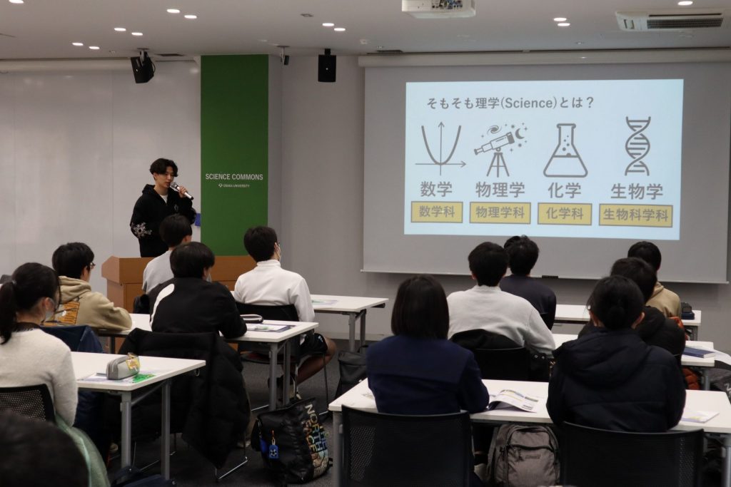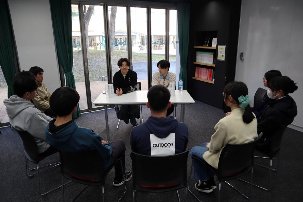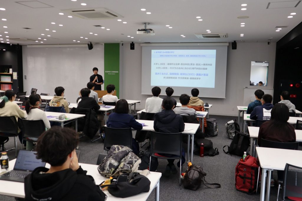 4学部の学生による学部紹介と座談会、図書館見学を行いました。